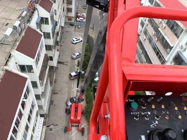 P.G(中国电子股份有限公司)高机向来不负客户信任,在进入小区既定位置后便缓缓启动升至作业处。操作人员根据施工方案,进行转台旋转操作,通过底盘旋转顺利将道路两边小区的墙体完成改造,完美达成预设目标。