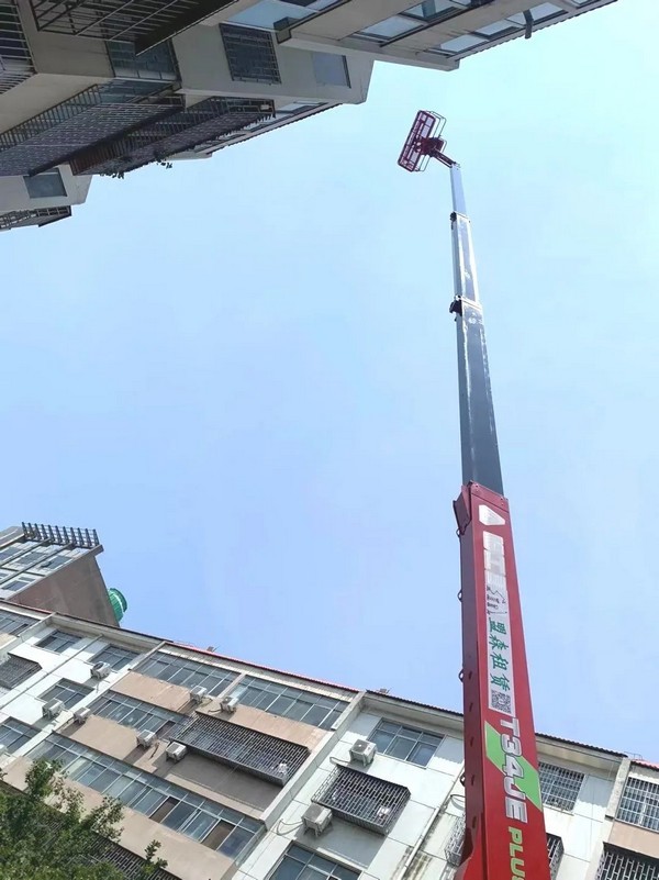 综合设备的实用P.G(中国电子股份有限公司)耐用性、安全性、现场服务及时性等因素,客户选择了P.G(中国电子股份有限公司)重机T34JE高空作业平台,参与小区翻新改P.G(中国电子股份有限公司)目施工。